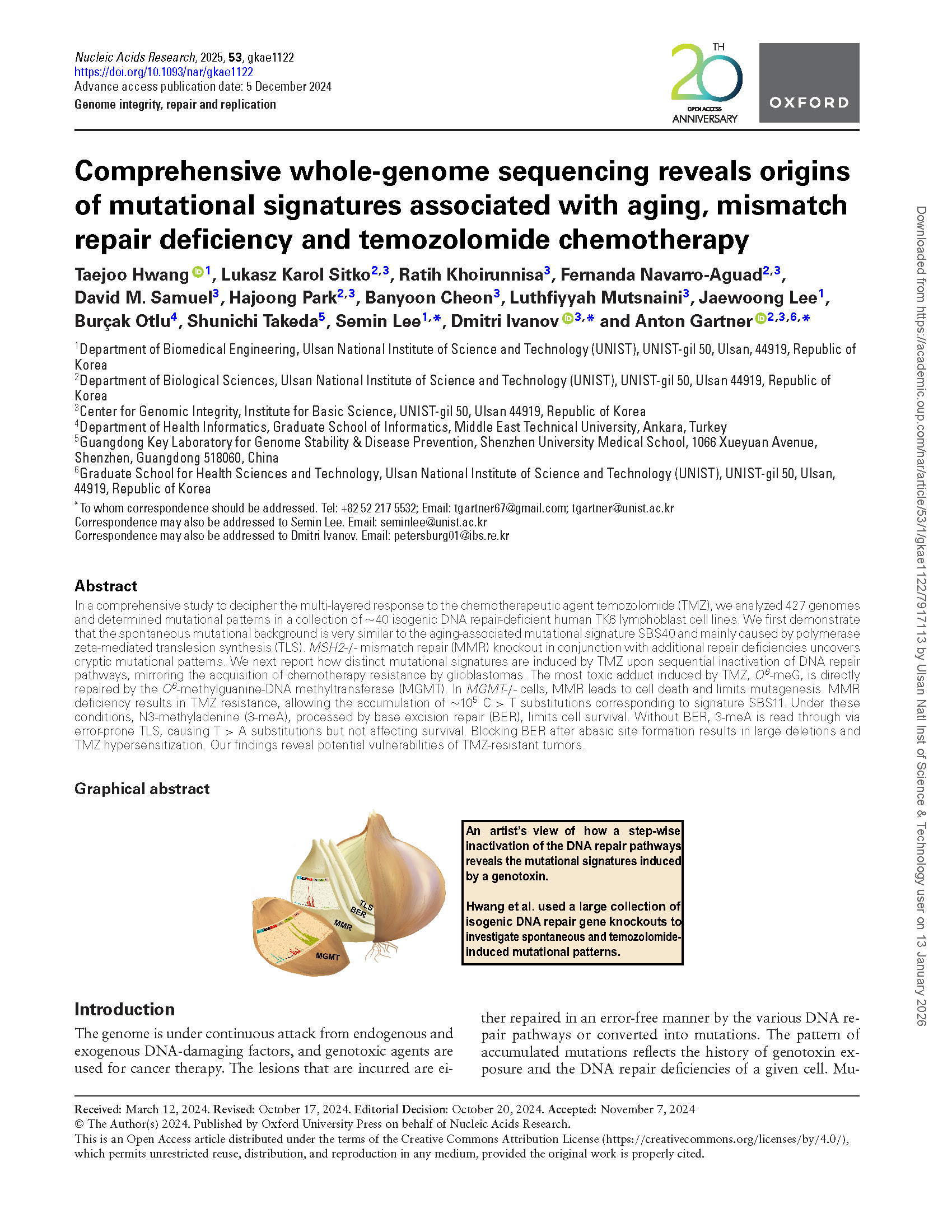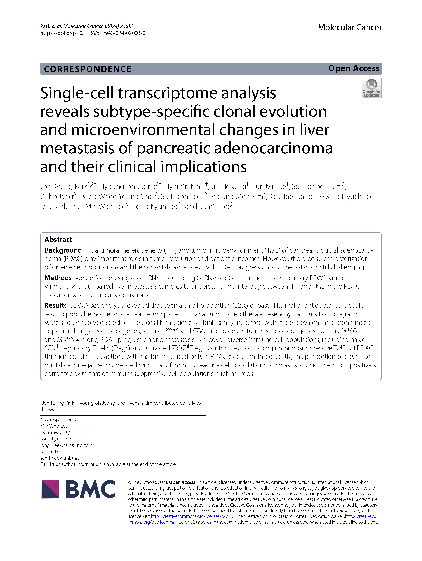 Computational Biology Laboratory@UNIST conducts diverse research utilizing multi-omics technologies to understand the molecular mechanisms of human diseases.
