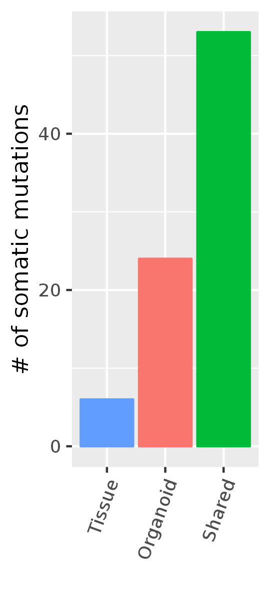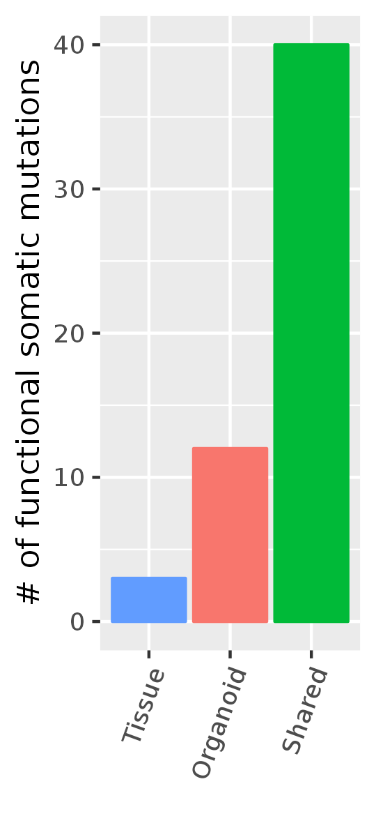 Number of Shared Mutations between Primary tumor and organoid (Functional mutations)