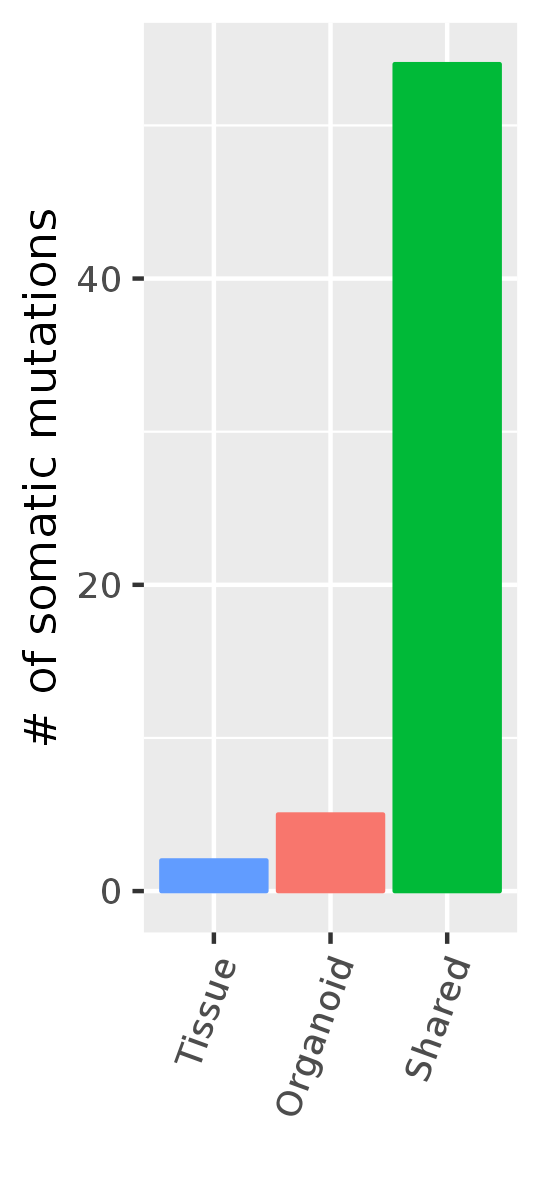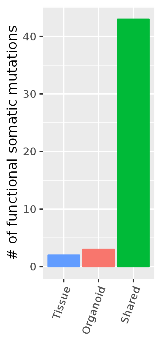 Number of Shared Mutations between Primary tumor and organoid (Functional mutations)